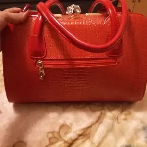New Red Purse w/ beatiful diamonds at opening and xome with shoulder straps to add on.