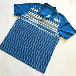 Oakley Men Blue Gray Stripe Regular Fit Short Sleeve Hydrolix Golf Polo Shirt XL