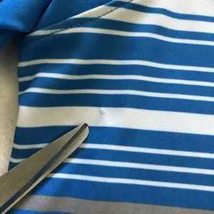Good used condition. There is a small pin hole under the right arm pit from a sensor. See pictures for size and placement. Not visible when wearing unless close up.