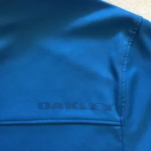 Oakley Men Blue Gray White Stripe Regular Fit Short Sleeve Golf Polo Shirt