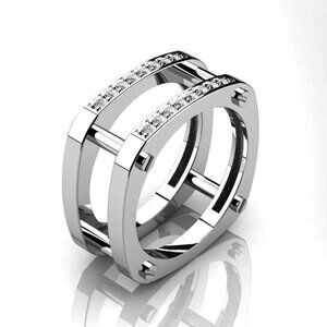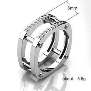 Square Glitter Zircon Double Layer Silver Plated Ring for Men, L187