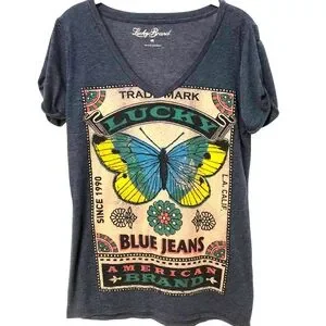 Lucky Brand V-Neck Lucky American Brand Graphic Tee Boho Shirt Top women's med