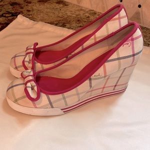 COACH tennis shoe wedges in classic multicolored tattersall tartan print. Size 8
