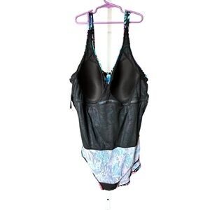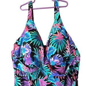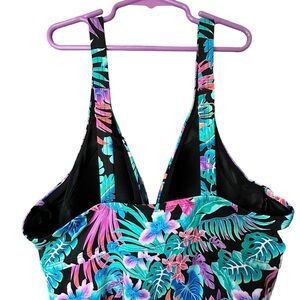 Swim 365 by Swimsuits for All. Excellent support in this swimsuit with Inside Tag. With a little cove up for those inner thighs. Got for a vacation and never wore. Love the vibrant colors! Wire Free bra is comfortable and also lifting and very supportive. Shoulder straps nice and wide for comfort and adjustable. Last Picture of model to see exact style from swimsuits for all, they do not have this pattern anymore.