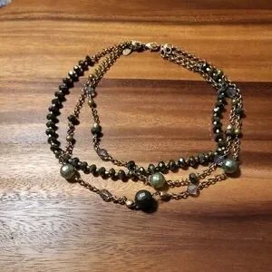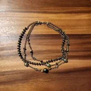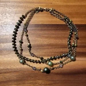 *SOLD* Shiny Green & Gold Y2K Lia Sophia Layer Necklace