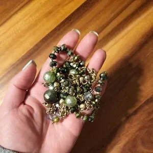 Shiny Green & Gold Y2K Lia Sophia Layer Necklace. Longest layer hanging length ~9". Shiny green & gold bead costume jewelry necklace. Fancy chic career cocktail party beads fun item. Stamped Lia Sophia. Circa early 2000s y2k. Good used condition; GUC. 💫