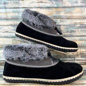 Sperry Womens Duck Mid Top Slipper Size 7 Black Suede Faux Fur Lined Warm Ladies
