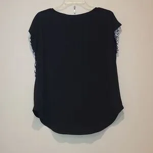 Size 1 by Chico's standard. Black, off white, gray, tan. Pullover. High front, low back. Pit to pit 20". Length in front 24". Length in back 27".
