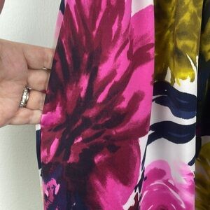 Just…Taylor Navy Striped and Pink Green Floral Gold Zip back Dress Size 4