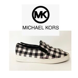 Michael Kors Black & White Plaid Slip-On Shoes, Size 10