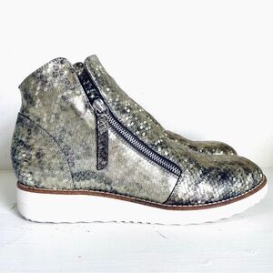 Anthropologie Silent D OHMY Hightop Zip Up Leather Bootie Sneaker In Antique Gold Honeycomb Textured Print Size 41. Good condition gently owned.