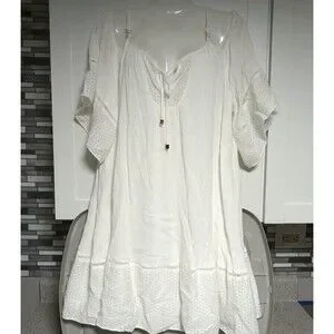 Suboo cold shoulder white knit dress . Bohemian , peasant flowy. Length 33" and pit to pit 23"