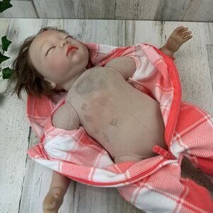 The hands and leg head are silicone only. The rest it’s fabric and the fabric needs to be clean I haven’t try to clean it. They have been playing. The clothes fits of a 3 month real baby she’s 20” long.