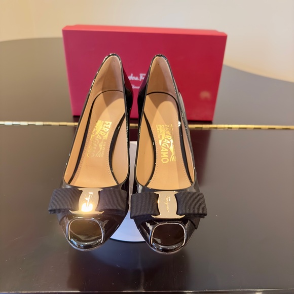 Salvatore Ferragamo NWT Luxury Party Classic RARE Authentic Black Patent Pumps