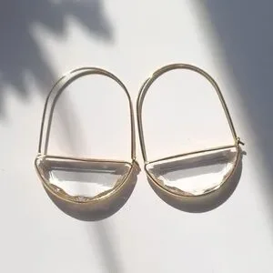 18k gold hoops with clear sea glass