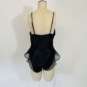 Vintage Josie Lingerie Satin Bodysuit Women's Size Medium Black Lace Bow