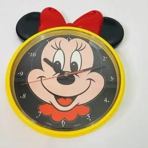 Vintage Minnie Mouse Time Works Wall Clock 90s W/ Box Yellow Black Red Retro