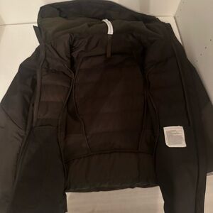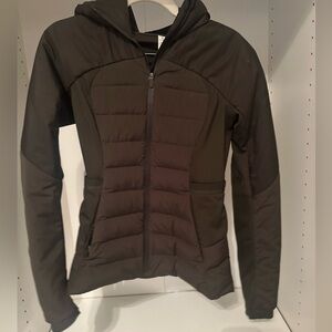 Super stylish and cute dark olive green jacket! Used one time and it has no flaws at all! The size tag is on the jacket. Looks like new!
