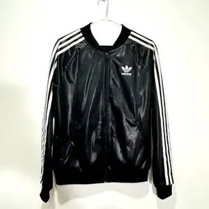 ADIDAS Black Supergirl Wet Look Track Zip-up Sweater in Women's Size Small