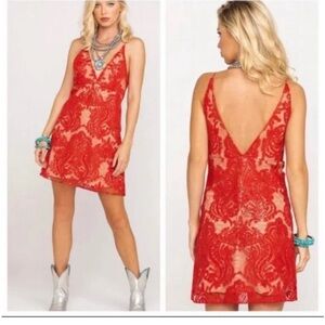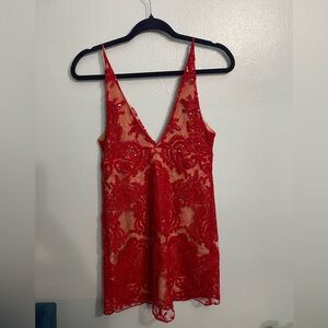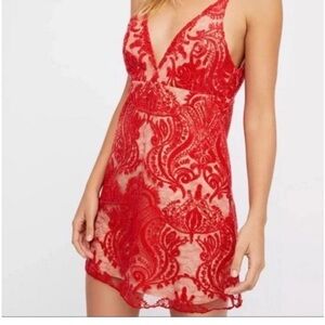 ☀️NWT Free People Red lace mini dress