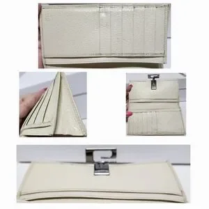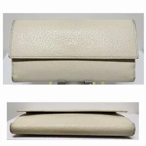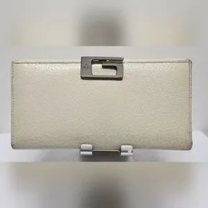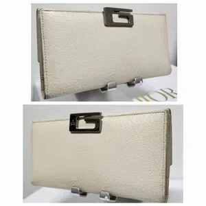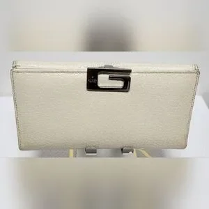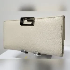 GUCCI G Clasp Continental Pebble Grain Ivory Leather Wallet Auth #035.2778.2097