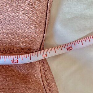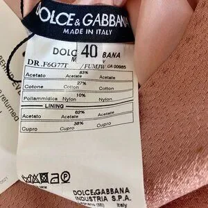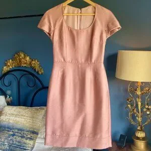 Dolce & Gabbana peachy pink shimmery wiggle dress, size EU 40. Cap sleeves, lined, hidden zip up back, scoop neck. Excellent used condition, one tiny mark at top of right bust as shown in photo 8. Bust measures 17.5 inches laying flat, waist 14 inches, hips 18.5 inches, length of dress from top of shoulder to hem is 38 inches. Cat friendly, nonsmoking home.