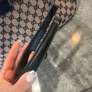 GUCCI rare Limited Edition bamboo doctor bag. This is a light pink color with the black gg’s. Bamboo lock closure. Top leather handle is not broken.. photo to show how the leather handle would look. Would need simple repair to have the metal o-ring reattached. Pre Loved. Excellent condition. The canvas shows no wear. Slight wear on bottom leather corner as shown. Purchased in Milan Italy. Serial # 112366 002046