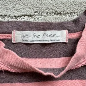 Free People We The Free The Twist Coral Light Striped Tank Top in good condition. Size small. Two small pen holes on the very bottom of shirt. Please see photos. The last picture is just to show style. Color is coral light.