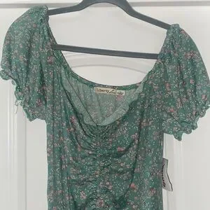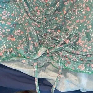 New with tags. Can be worn on or off shoulder. Functional drawstring at bottom of dress.