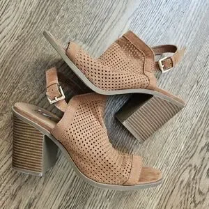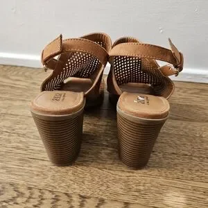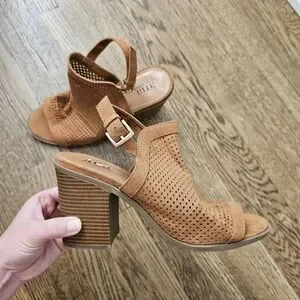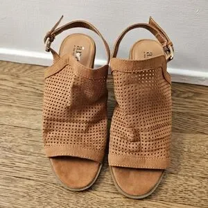 a.n.a Madelyn open toe slingback bootie sandals chunky block heel brown 7