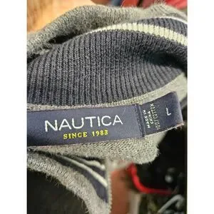 Nautica Red and gray striped quarter zip knit cotton sweater size Large.