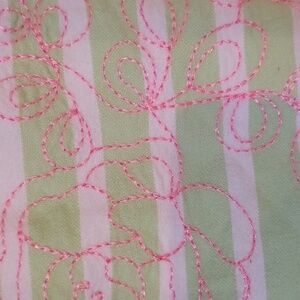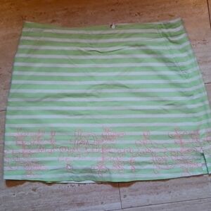 Very lightly worn and in great condition. Side pockets. Beautiful pink floral design embroidery. Zipper in back. Perfect for golf, tennis, leisure, anything! Measures approximately 17" at waist and 17" in length.