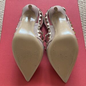 Valentino rockstud heel in Poudre color and grained leather. Great condition. Size 34/4. 100mm height. Comes with extra heel tips, rock studs, shoe bag, and box.