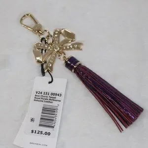 NWT BRAHMIN Crystal Bow Bag Purse Charm Leather Tassel Royal Purple Melbourne
