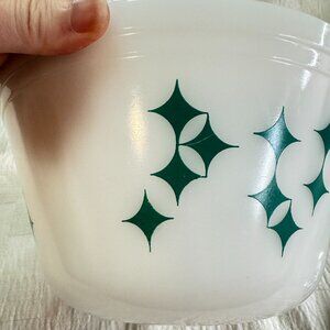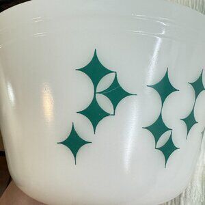 Vintage Federal Glass Mixing Bowl Oven Ware Turquoise Atomic Star MCM 3 QT