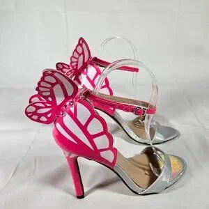 JOJO Cat pink, white and iridescent silver butterfly high heels