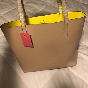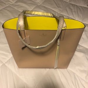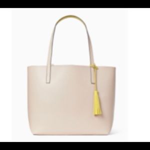 Beautiful reversible leather tote bag in excellent barely used condition. Yellow on one side and on the other tan / blush color. Extremely lightweight. Great for work, school, or daily use. **PLEASE NOTE tags have been removed and bag was briefly and gently used.