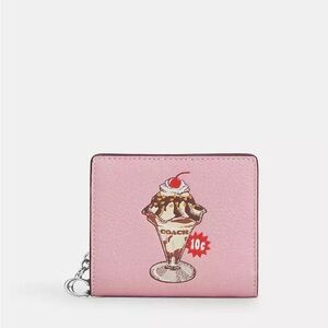 Coach Corner Zip Wristlet - Cherry (Pink) Print Canvas & Leather - brand new