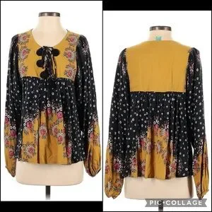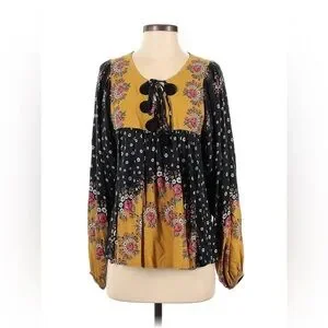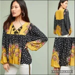 Anthro Farm Rio Floral Polka Dot Tassel Tie Blouse Top