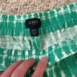 J. Crew Linen Drawstring Shorts. Linen blend shorts. Elastic. Green and white tie dye, size XXS. Worn a couple times and in like new condition.