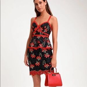 LULU’S Women’s XL Karina Black and Red Floral Embroidered Peplum Cocktail Dress! ♥️