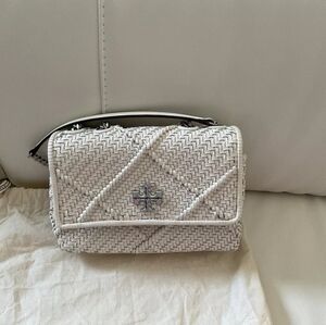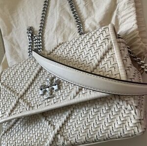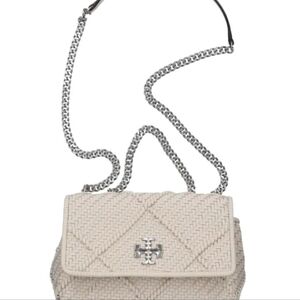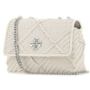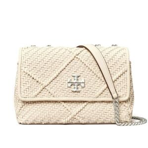 Tory Burch Kira Diamond woven small convertible shoulder bag ivory color
