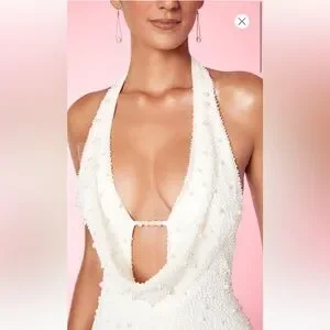 Pearl accents on embellished mesh fabric. Worn only once on my bachelorette! Avoid international shipping cost not ordering via Oh Polly’s website (paid $40 for that alone).