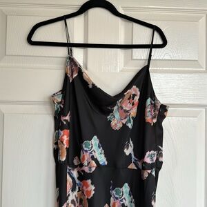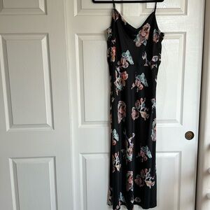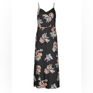 Vince Printed Satin Black Floral Slip Dress NWT