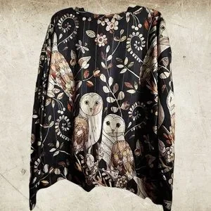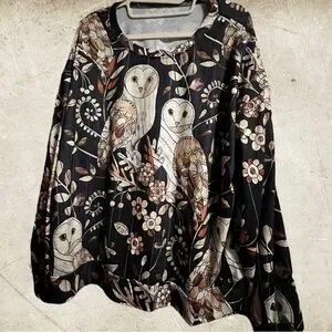 Owls in the Forest Women’s Blouse NWOT 95% Poly/40% Spandex, crewneck, wide hem.