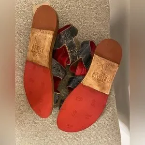 3 strap flat perforated sandal with red leather lining