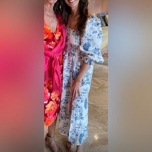 A body-hugging smocked bodice balances out the voluminous ruffle-cuff sleeves of this linen dress in an earthy hue, while a soaring slit shows some leg.