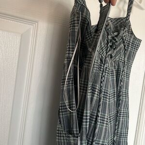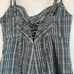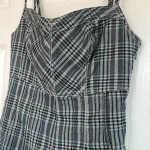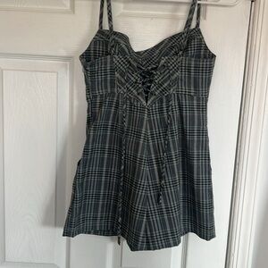 This is a URBAN OUTFITTERS romper with the colors blue black white green. I know in photos it doesnt look ilke it has those colors but it does, very small amount. its a size XS. It gives me a flannel checker style pattern. Mini romper UO urban outfitters super cute and i love the back of this romper dress. Perfect for summer time or spring. love this style. One piece