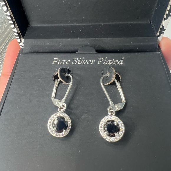 Sparkle allure pure silver plated cubic zirconia earrings. Black and silver, new