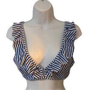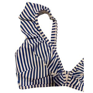 Women’s Navy Blue & White Striped sz L ruffled bikini top w/adjustable straps